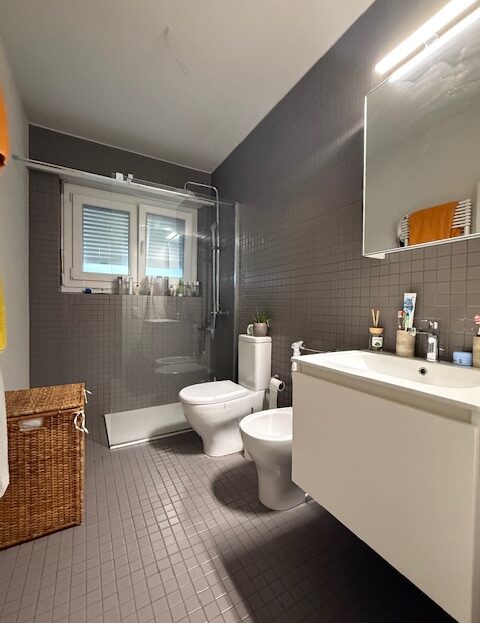 Moderno servizio con doccia e finestra